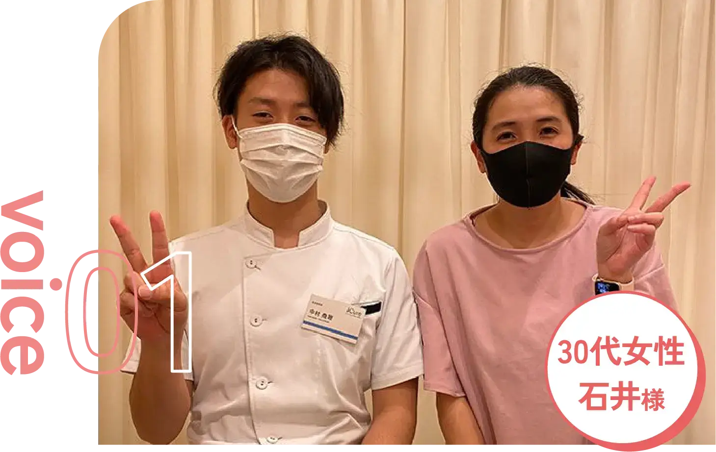 骨盤矯正をしていただいています。施術後は肩や首がとても楽になり、万年肩こりでしたが少しずつ良くなっているような気がします。
