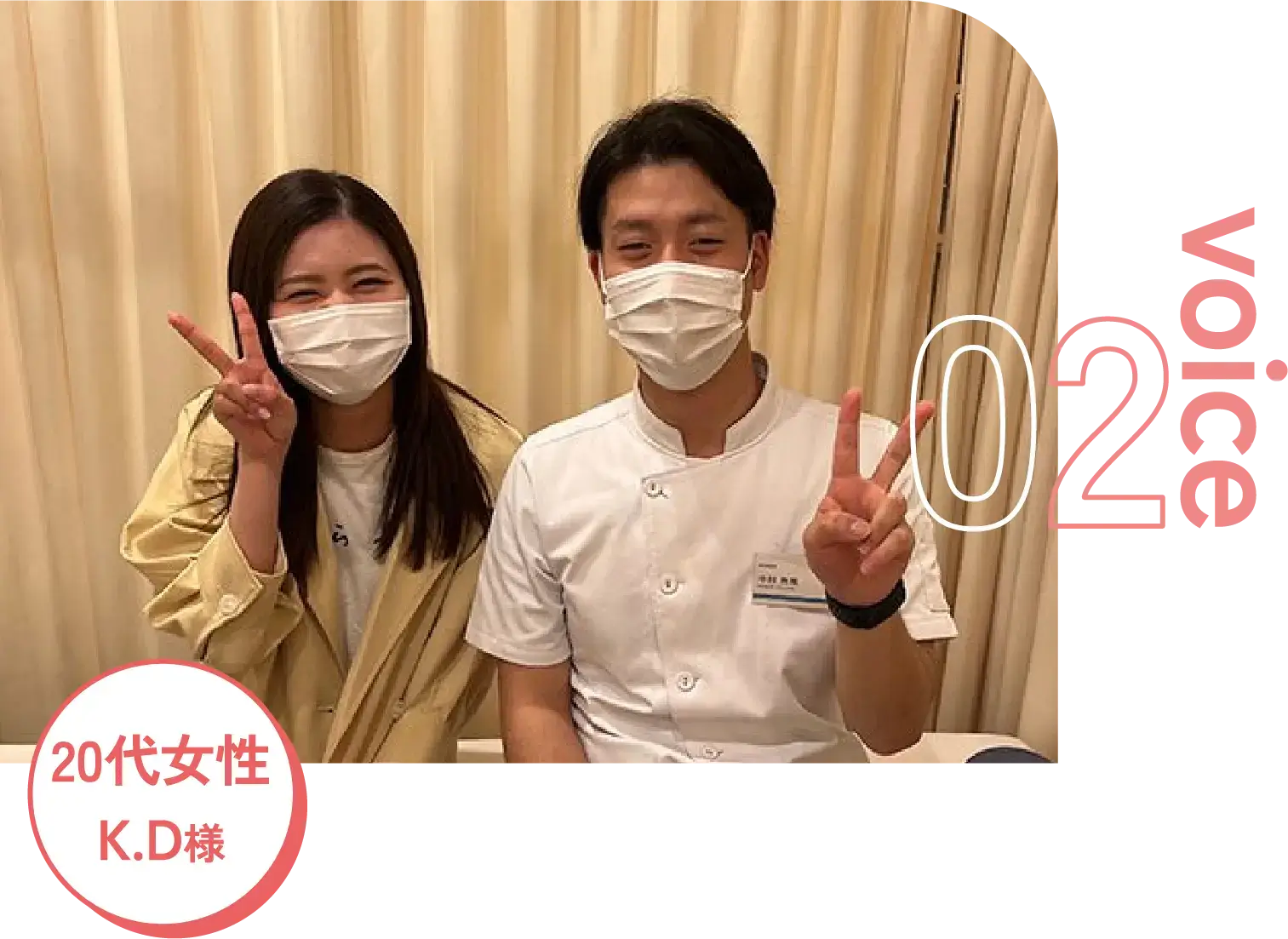 姿勢が悪いのを先生に言われて矯正とEMSトレーニングで姿勢を良くしました。今は週1~2回の通院でメンテナンスしています。